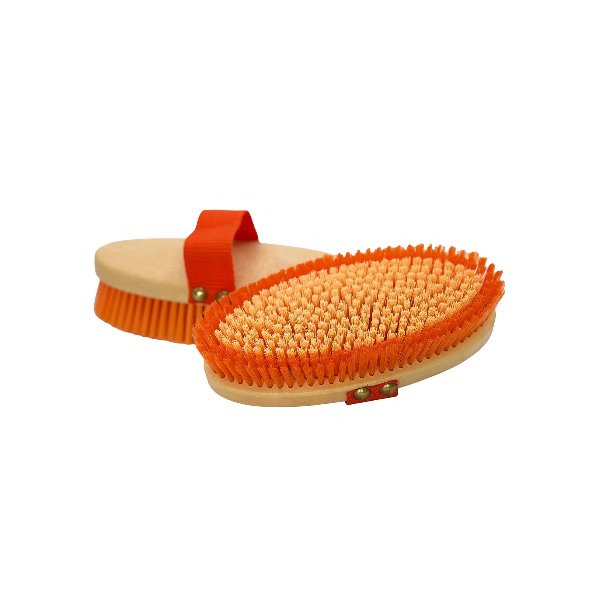 Crafted by Salmon Horse Brushes for Moorland Rider, this high-quality body brush features a sturdy woven strap and tightly packed bristles for an exceptional grooming experience.